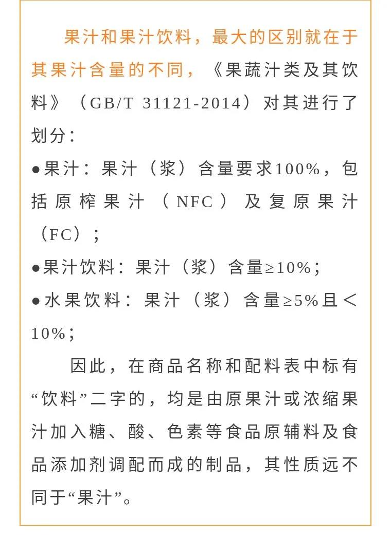 随着果汁饮品的盛行,市场上带“果汁”字样的食品琳琅满目让人挑花了眼,100%果汁、果汁饮料、NFC果汁...各式各样的“果汁”到底有什么区别?我们又该如何选择呢?