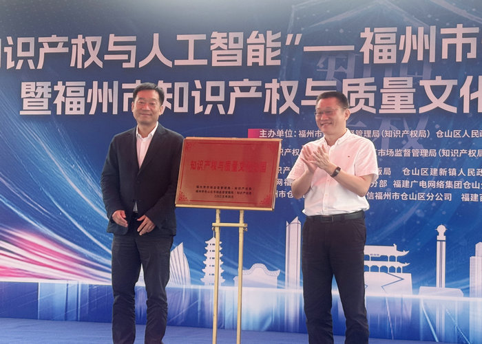 开园仪式上,德州扑克 何朝晖副局长、仓山区人民政府高晓健副区长共同为知识产权与质量文化公园揭牌。