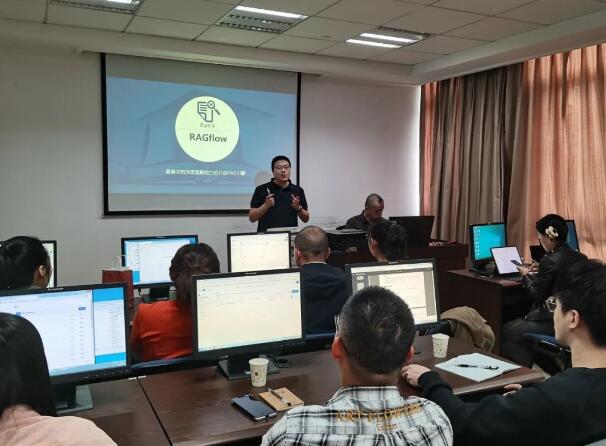 在开班仪式上,高峰副局长对 AI 创新应用技术小组的成立表示热烈祝贺,并对小组成员寄予厚望。他指出,人工智能技术是未来市场监管工作的重要发展方向,小组成员肩负着探索创新、推动技术落地的重要使命;并强调要通过不断学习和实践,将人工智能技术与市场监管业务深度融合,打造具有本地特色的智能化监管模式,为提升市场监管效能、优化营商环境贡献智慧和力量。本次培训采用"授课+实操"的形式,旨在让小组成员在理论学习的基础上,通过实际操作加深对 AI 技术的理解和应用能力。培训内容聚焦于本地化 AI 知识库的创建与使用,详细讲解了Open WebUI、Dify、RAGflow知识库的架构设计、知识库的配置、创建及使用等关键环节。小组成员进行实践操作,通过亲手搭建知识库框架、导入本地数据、创建聊天助手等并进行测试,成员们对 AI 技术的应用有了更直观的认识,也深刻体会到本地化知识库在市场监管工作中的巨大潜力。