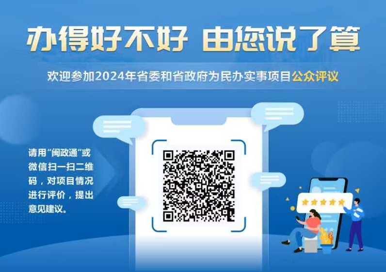 二、活动参与方式:通过手机微信扫描“民生实事码”(详见下方图片),或使用“闽政通”登录后即可对项目进行评价、反映问题、提出建议,也可通过省政府门户网站、微信公众号等进入活动页面参与活动。请大家踊跃参与。
