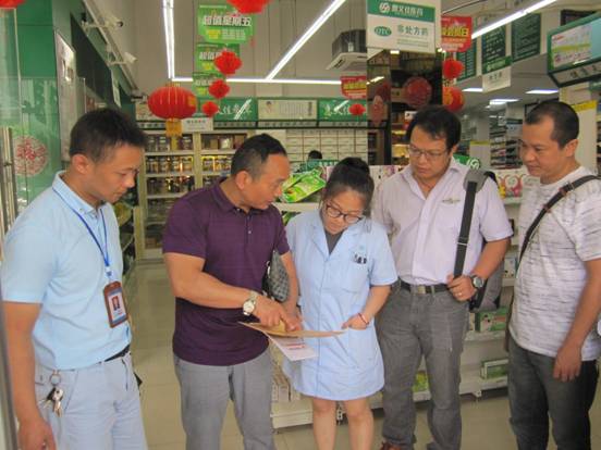 为深入开展知识产权执法维权“护航”专项行动,规范商品流通领域专利保护工作,提升“七五”普法宣传力度,切实维护消费者的合法权益,开展专利领域失信问题专项治理工作,2018年6月8日,福州市知识产权局联合福建省知识产权维权援助中心、罗源县知识产权局赴福建惠又佳医药有限公司罗源青禾店、福建省青禾购物广场有限公司开展专利商品专项检查行动。