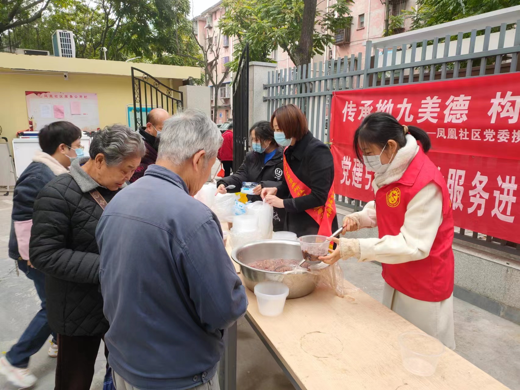 志愿者们早早就为社区里的老人用糯米、红糖、花生、红枣等材料精心熬制的甜蜜“拗九粥”,并邀请老人家坐下品尝。在送上拗九粥的同时,祝福他们身体健康、幸福快乐。通过一碗碗香甜软糯的拗九粥,把关怀送到老人身边,现场气氛其乐融融。