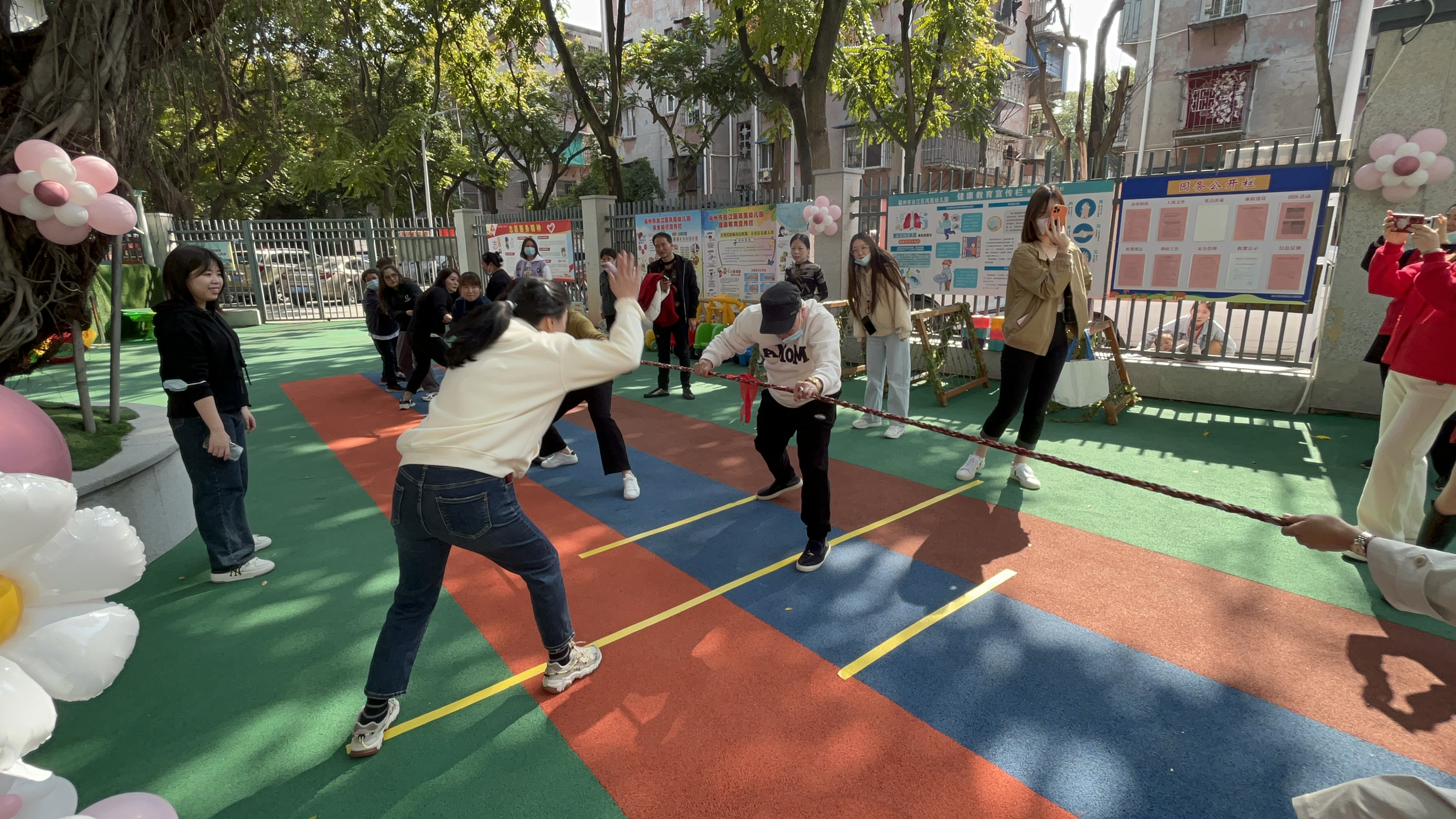 拔河比赛、甩便利贴、踩气球等游戏,每一项游戏都兼具趣味性、互动性、团队性,随着一声"开始"指令的响起,趣味游戏比赛正式拉开序幕。现场参赛选手们个个跃跃欲试,在现场加油欢呼声中,大家精神饱满、热情高涨,展开激烈比拼。活动现场还为比赛优胜者颁发精美的奖品,获奖者用汗水赢得了荣誉,脸上洋溢着笑容。