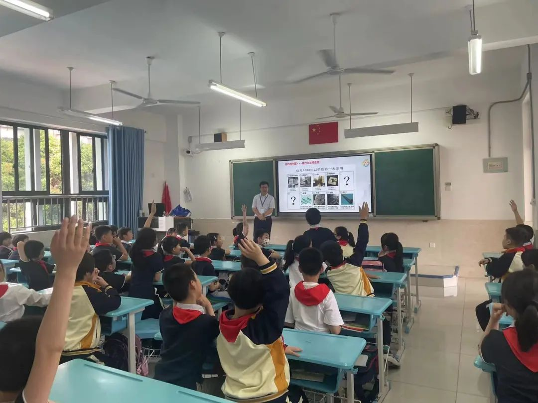 老师给同学们上了一堂生动的知识产权创新文化课,课上通过大量图片及通俗易懂的案例,生动授课,科普知识产权有哪些、如何影响人们生活等,鼓励学生们去寻找、发现日常生活中接触到的知识产权,让学生们认识到知识产权的重要性,将知识产权创新意识深深扎根在他们心中。课堂上,学生们认真听讲,发散思维,踊跃发言互动,课堂气氛热烈,公开课在学生们的欢声笑语中结束。