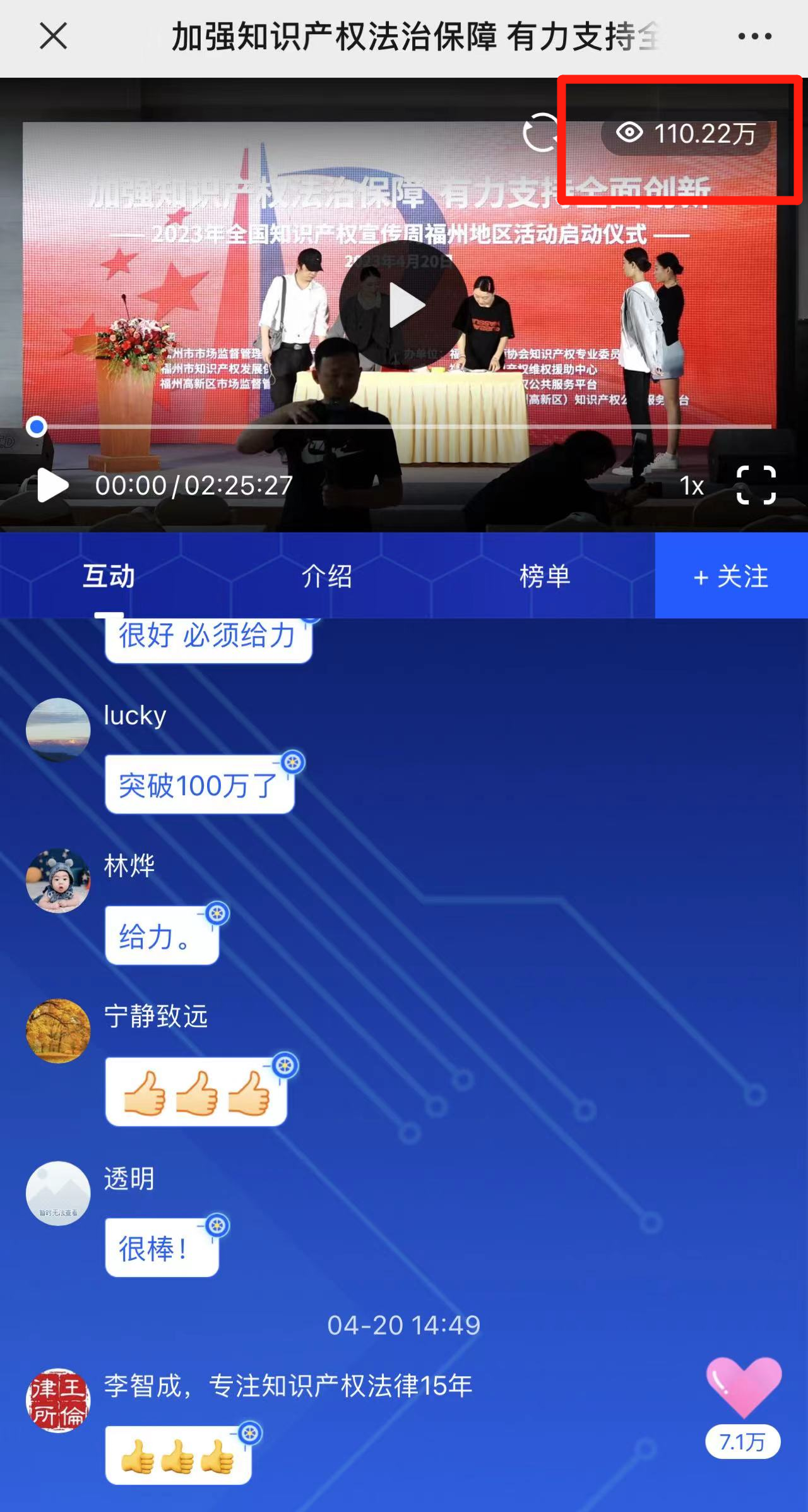 据悉,宣传周期间,福州市知识产权系统将密切围绕知识产权强市建设,结合线上线下多种渠道、送知识产权入企业、入园区、入校园、入社区,开展专题培训、主题宣传、项目推介、成果发布等形式多样的活动50余场,积极提升全社会知识产权保护意识,加强知识产权法治保障,有力支持全面创新,为福州市加快现代化国际城市建设添砖加瓦。