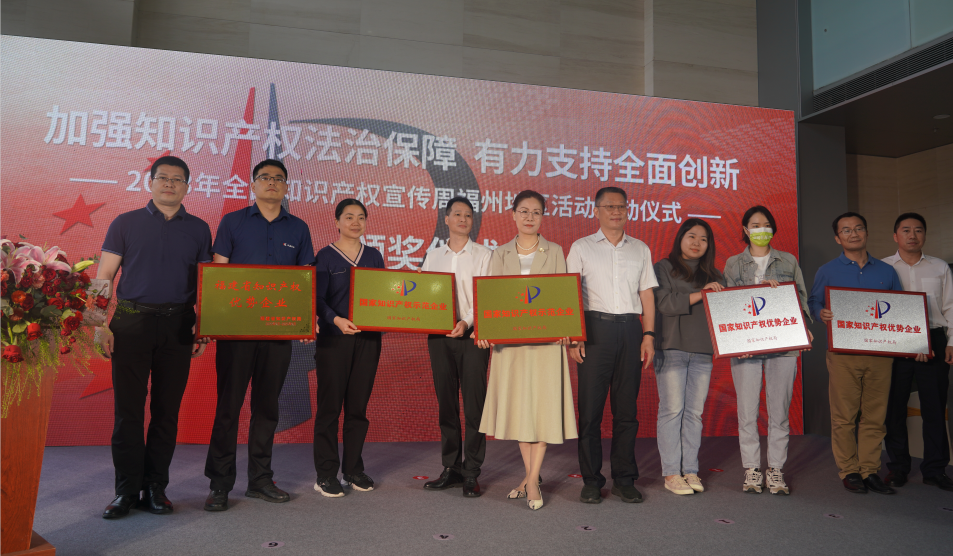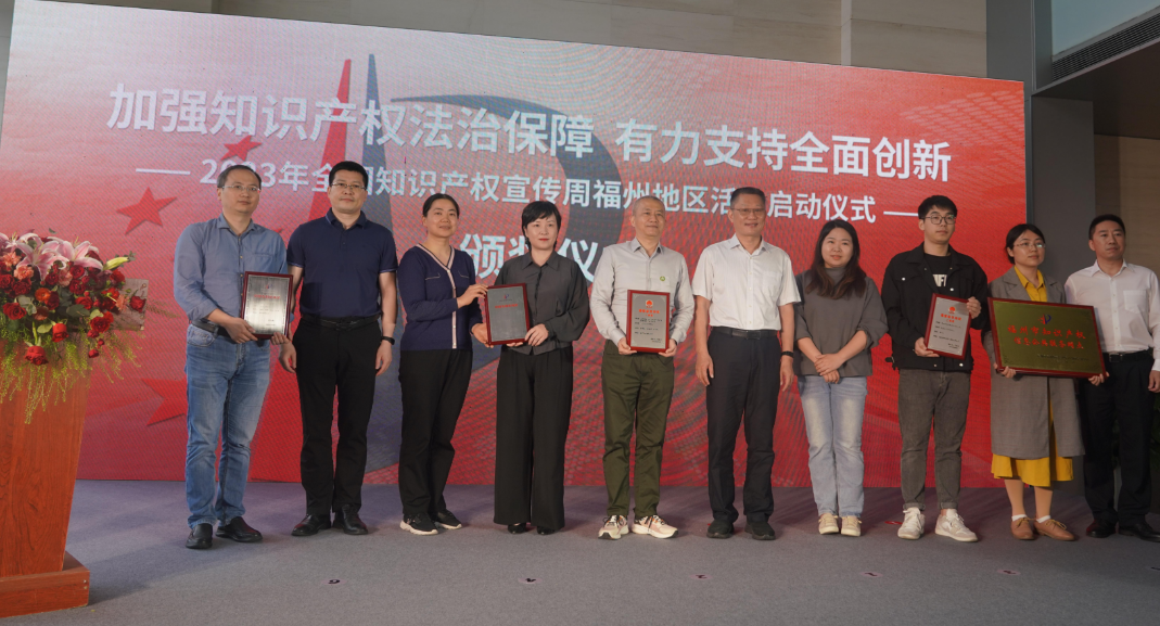 活动现场,何朝晖副局长、魏志谋副主任等嘉宾为2022年度福州地区入选国家知识产权示范企业、国家知识产权优势企业、福建省知识产权优势企业、国家专利奖获奖企业、福建省专利奖获奖企业代表、福州市知识产权信息公共服务网点、福州市产业知识产权协同保护与运营中心及福州市十大知识产权执法先行所授牌和颁奖。