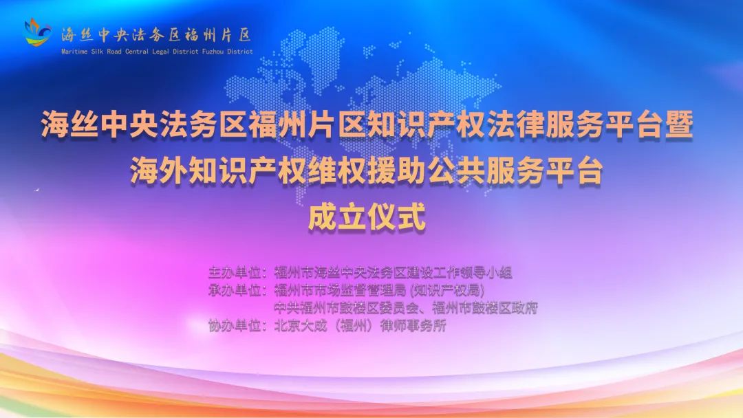 在第23个世界知识产权日到来之际,为进一步提高创新主体海外知识产权保护能力,为企业提供一站式知识产权服务,4月26日,海丝中央法务区福州片区知识产权法律服务平台暨海外知识产权维权援助公共服务平台成立仪式在海丝中央法务区福州片区举行。