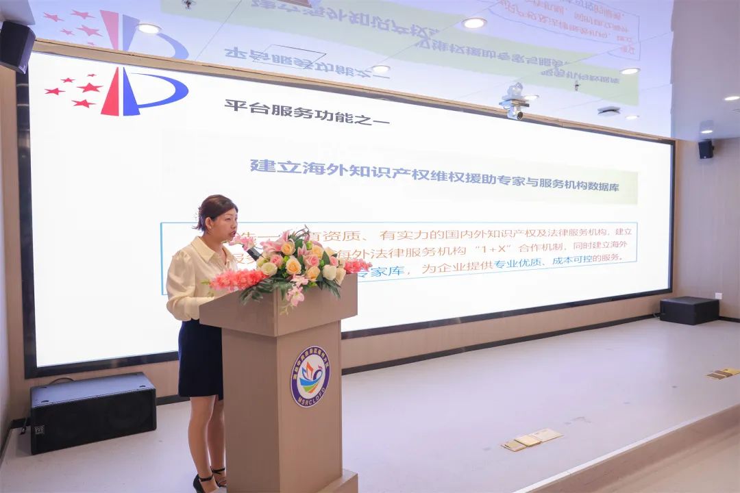 知识产权处副处长陈巧思介绍海外知识产权维权援助公共服务平台。该平台以法务区为依托,充分发挥鼓楼“首善之区”示范引领作用,维护企业在海外的知识产权合法权益,建立健全福州市海外知识产权纠纷应对体系,以服务创新驱动高质量发展,提高企业知识产权保护能力,增强企业“走出去”过程中的知识产权纠纷防控意识和纠纷应对能力。