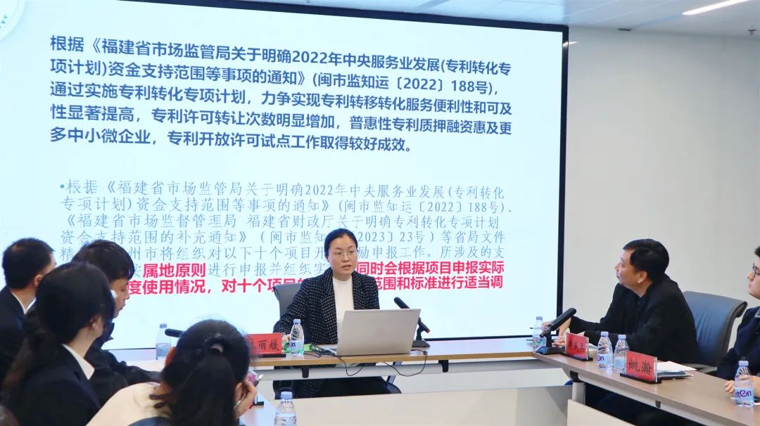 当天,在二楼分会场,举办了鼓楼区市场监督管理局“比学习争示范、比作为争先锋、比实干争一流”暨中央服务业发展(专利转化专项计划)资金2023年福州市支持范围及标准政策宣贯、申报实务操作及知识产权保护沙龙活动。