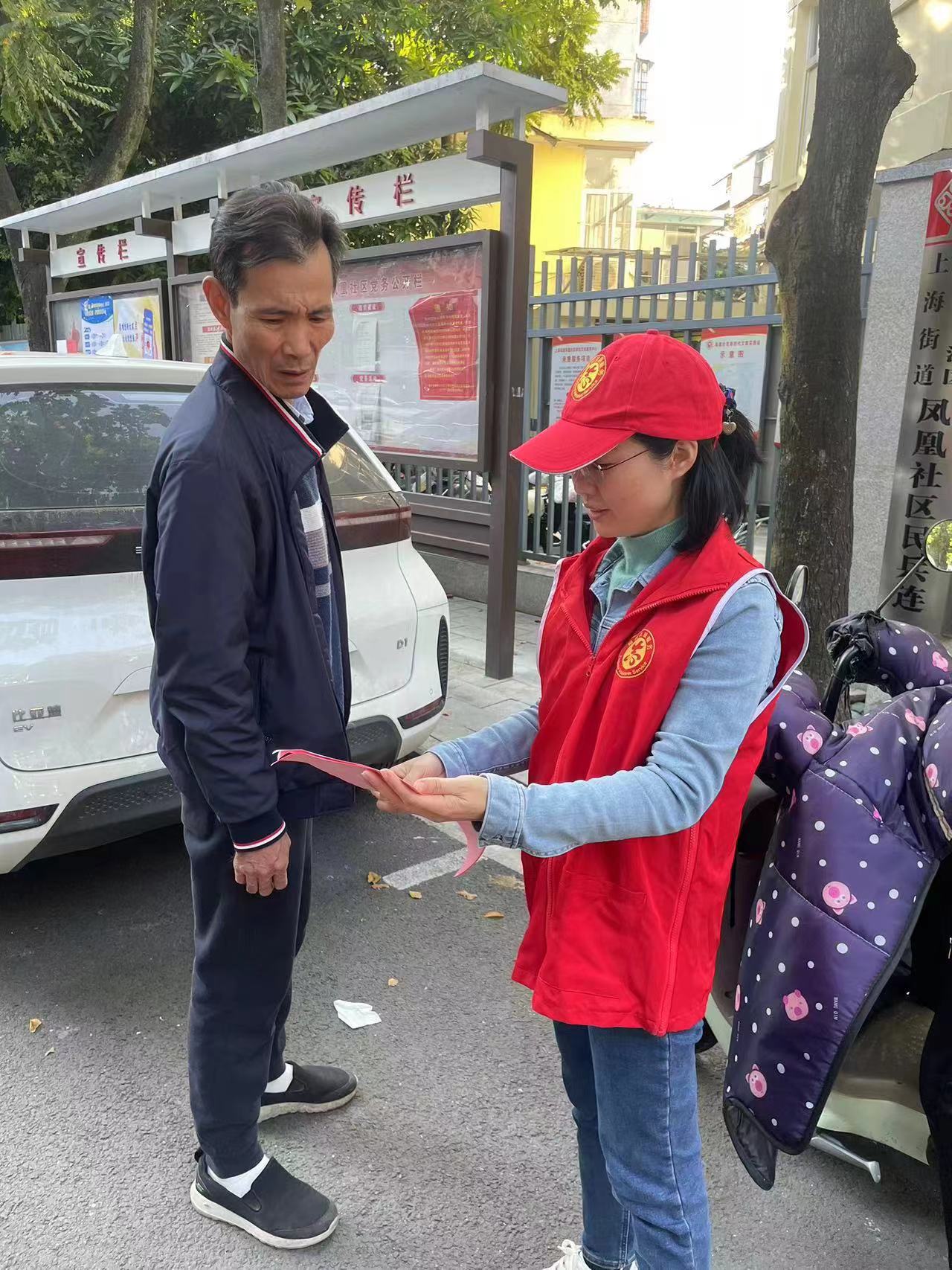 随后志愿者来到社区进行宪法普法宣传,通过发放宣传资料、问答互动、真实案例讲解等方式对法律法规进行了宣传。现场志愿者深入浅出的向现场群众普及法律政策知识,针对群众提出的问题,一一作出解答。志愿者用通俗易懂的语言真正把法律知识和法律思维送到广大群众中去,营造社区学法、知法、懂法、守法的良好法治氛围。除此之外,志愿者还积极宣传科普中国侨智发展大会,让越来越多人知晓大会的信息,倡导大家不做有悖公德、 有违诚信、有损形象、污染环境、危害秩序等不文明行为,保持讲文明、树新风、重礼仪、守公德的良好习惯。
