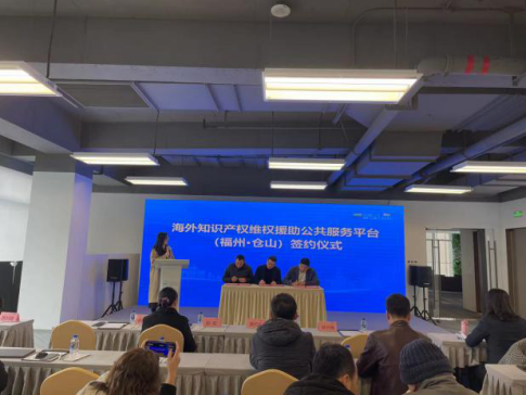 活动伊始,福州市市场监督管理局(知识产权局)、仓山区市场监督管理局(知识产权局)、仓山区国际贸易促进会的三位代表共同签订了海外知识产权维权援助公共服务平台共建协议,福州市知识产权发展保护中心黄绍梁副主任为仓山区国际贸易促进会负责人授牌。