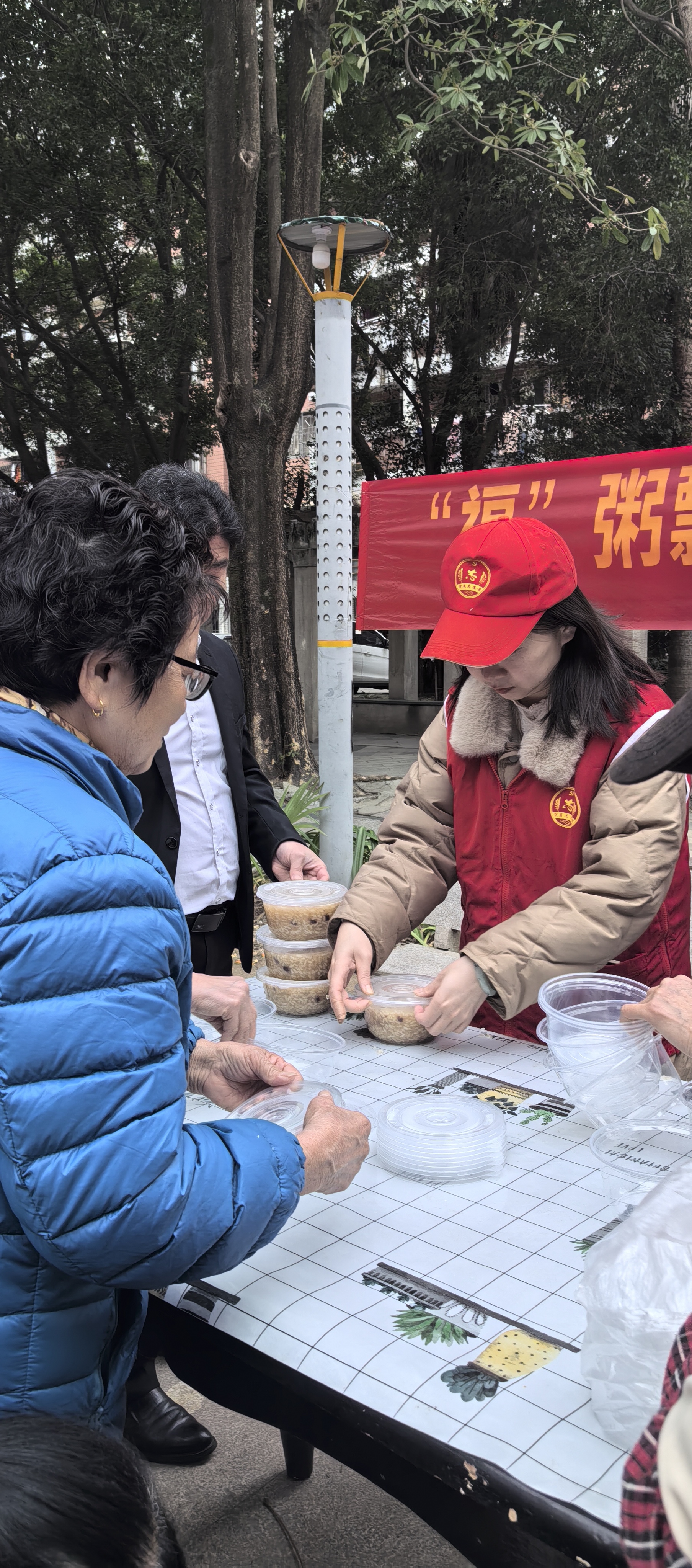 活动当日清晨,社区工作人员与志愿者们早早来到社区,分工协作、有条不紊,他们将准备好的糯米、红枣、花生、桂圆、红糖等拗九粥食材全部洗净,放入锅中精心熬。随着时间的推移,粥香逐渐弥漫开来,整个活动现场都充满了香甜温暖的气息。社区老年人齐聚一堂志愿者们为到场的老人们送上一碗碗热气腾腾的拗九粥同时也送上节日的关怀与祝福,与老人们共同品味拗九节浓浓的节日氛围。志愿者们自发集结为一支特别的爱心队伍,上门为高龄或行动不便的老人派送拗九粥。每到一户长者家里,志愿者们都会亲切地与老人拉家常,询问他们的身体状况和生活情况,并为他们讲解日常健康知识,叮嘱他们要注意多身体用暖心服务让传统节日更显温情。