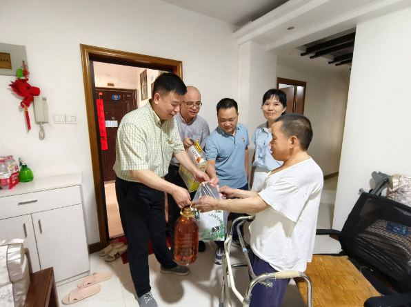三是精准扶贫进社区。围绕居民需求和社区热难点问题,开展精准帮扶,与社区工作人员一同前往金山明星小区孤寡老人、尿毒症患者家中慰问,和困难家庭真切谈心,了解需求,送上米油等生活必需品,给困难家庭送上物质关怀和精神慰藉,用真诚的关心关爱鼓舞困难人员的生活信心。