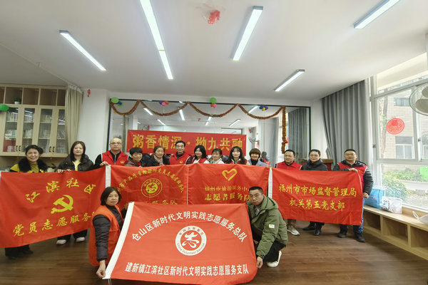 拗九节是福州特有的民俗节日,是弘扬孝老爱亲美德的重要载体,已有400多年的历史。为深入学习贯彻党的二十届三中全会精神,弘扬孝老爱亲的传统美德,传承中华民族优秀文化,坚持不懈用习近平新时代中国特色社会主义思想凝心铸魂,营造全社会敬老爱亲的良好风尚,2月25日上午,德州扑克 机关第五支部、市质检所党员志愿者服务队联合仓山区建新镇江滨社区在金山明珠小区居家养老站开展“粥香情深 拗九共融”志愿服务活动。
