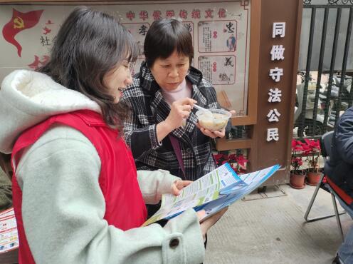 紧接着,志愿者还通过图片、宣传页等形式向居民介绍拗九节的由来和福州传统习俗,以生动的故事案例开展生活垃圾分类知识宣传与指导,宣传平安知识,讲解药品不良反应及医疗器械不良事件小常识,向居民普及垃圾分类和用药安全知识,并提醒注意防范电信诈骗、防火防盗等。