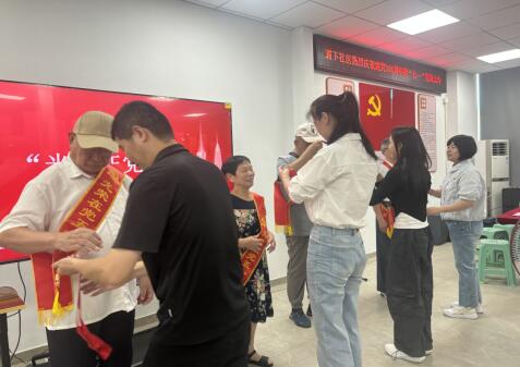 随后的“光荣在党50年”纪念章颁发环节,仪式庄重而充满温情,中心及社区代表为在党50年的老党员佩戴纪念章,老党员们用朴实的语言讲述入党初心和实践感悟,现场青年党员纷纷表示,要以老党员为榜样,在新时代新征程中勇挑重担、接续奋斗。紧接着,大家一起重温入党誓词,精神进一步受到了洗礼,理想信念愈加坚定。