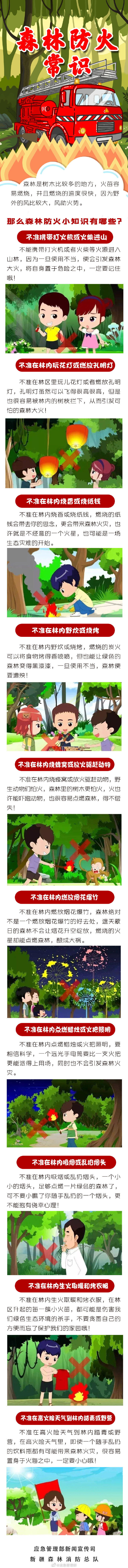 森林火灾是森林最危险的敌人,保护森林,人人有责。不准携带打火机或火柴进山、不准在林内玩花灯或燃放孔明灯、不准在林内烧香或烧纸钱……这些森林防火小知识,看图了解一下。