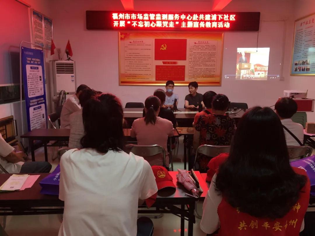 为深入学习贯彻习近平新时代中国特色社会主义思想,认真组织开展好庆祝中国共产党成立100周年群众性主题宣传教育活动,进一步激发干部群众爱党爱国的热情,日前,福州市市场监管监测服务中心党支部深入浦下社区开展“不忘初心跟党走”党史学习教育暨“我为群众办实事”座谈交流会。