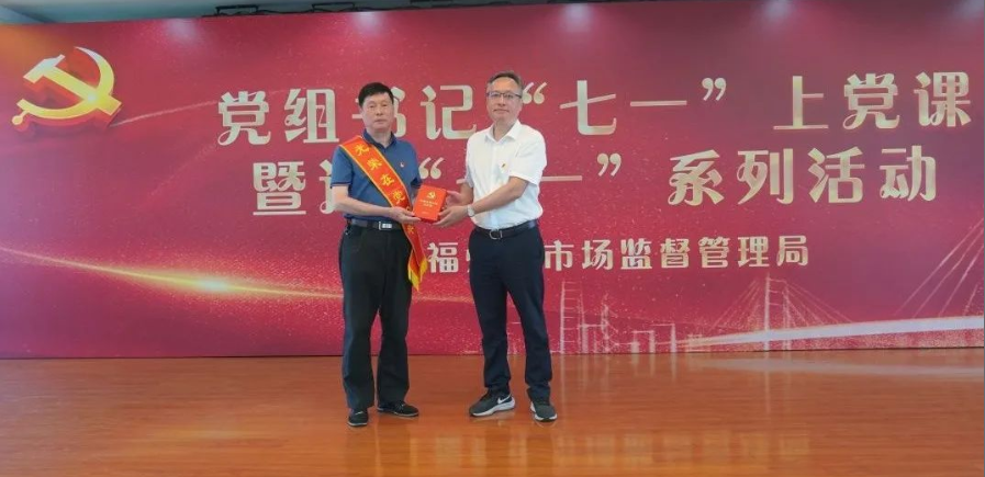 市局党组书记、局长陈宗胜同志向来到现场的老党员颁发了“光荣在党50年”绶带和纪念章,并对他们把最好的年华奉献给市场监管事业表示感谢,让老党员感受到党的关怀,引导广大党员尤其是青年党员主动向老党员对标学习,传承党的光荣传统和优良作风。