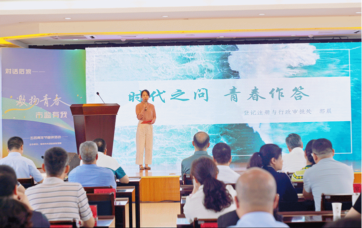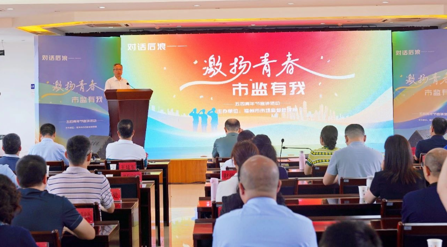 为深入学习贯彻党的二十大精神,积极落实“深学争优、敢为争先、实干争效”推动“党建领航、经济领跑、民生争先”行动部署要求,进一步激发青年干部爱岗敬业、无私奉献的工作热情,提增市场监管队伍的凝聚力和战斗力,5月4日上午,我局举行“对话后浪——激扬青春、市监有我”五四青年节主题宣讲活动。来自局机关青年理论学习小组及局系统优秀青年文明号团队的共14名青年宣讲员,结合各自的工作实际,分别讲述自己对市场监管事业的参与、感受和思考,分享收获和成长,同时积极为市场监管事业建言献策。市局领导、各业务处室及局属单位负责人、综合执法支队中层以上干部以及来自全局系统近50名青年代表们参加了此次活动。