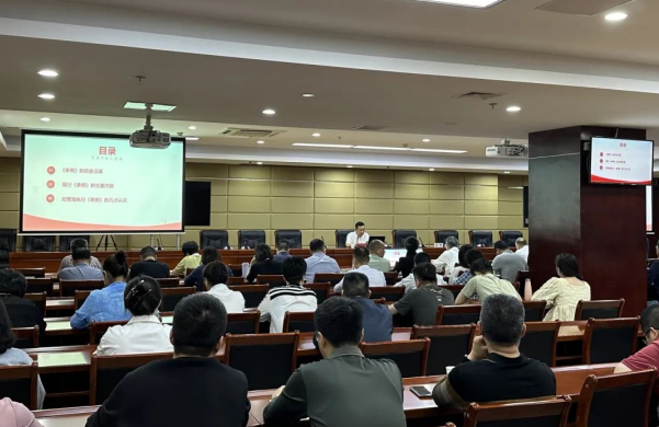 为深入学习贯彻习近平总书记关于党纪学习教育的重要讲话和重要指示精神,不断深化对新修订的《中国共产党纪律处分条例》的理解和把握,切实增强机关党员、干部的纪律意识和规矩意识,6月5日,德州扑克 举办解读《中国共产党纪律处分条例》专题宣讲,邀请市纪委监委十二室主任邵建武围绕党纪学习教育重点要求,对新修订《条例》进行辅导,局党组书记、局长陈宗胜及其他局领导,机关各处室党员、干部共100多人参加了学习。